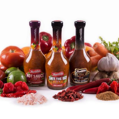 Sawetara botol kemasan sampel kanthi garis produksi iki